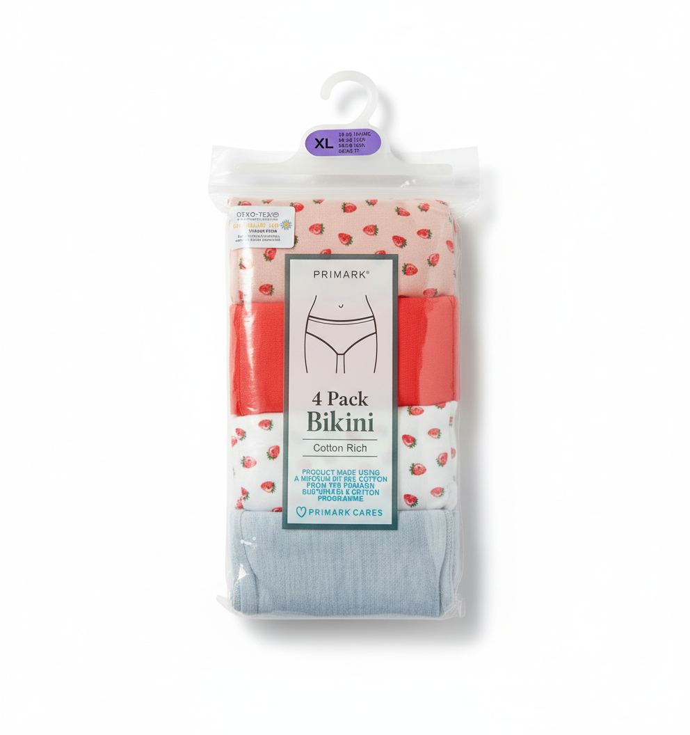 Primark 4 Pack Bikini (XL) Cotton Rich (Bikinis, Briefs, Underwear, Panties, Pants) Extra Large
