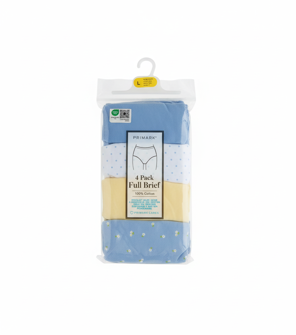 Primark 4 Pack (L) Full Brief 100% Cotton Rich (Bikinis, Briefs, Underwear, Panties, Pants) Large