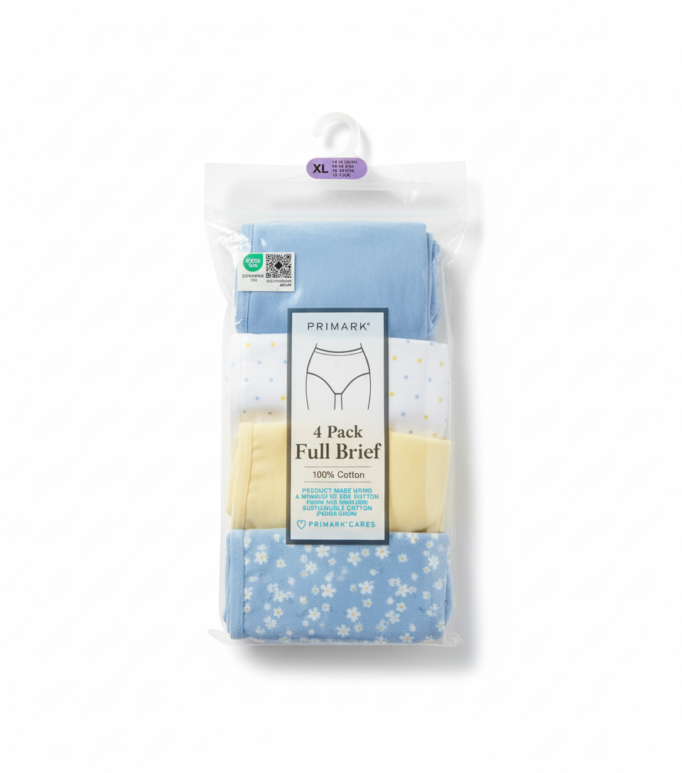 Primark 4 Pack Full Brief (XL) Cotton Rich (Bikinis, Briefs, Underwear, Panties, Pants) Extra Large