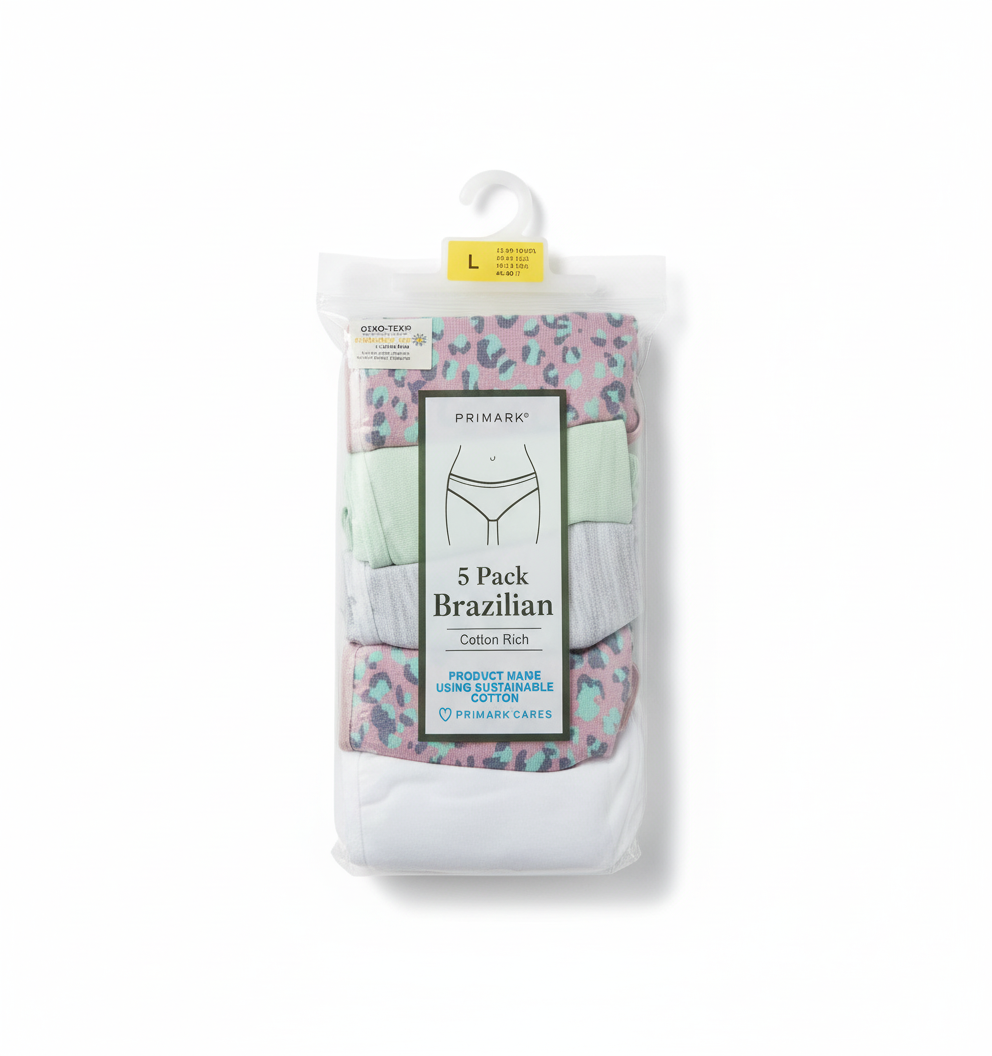 Primark 5 Pack (L) BRAZILIAN Cotton Rich (Bikinis, Briefs, Underwear, Panties, Pants) Large