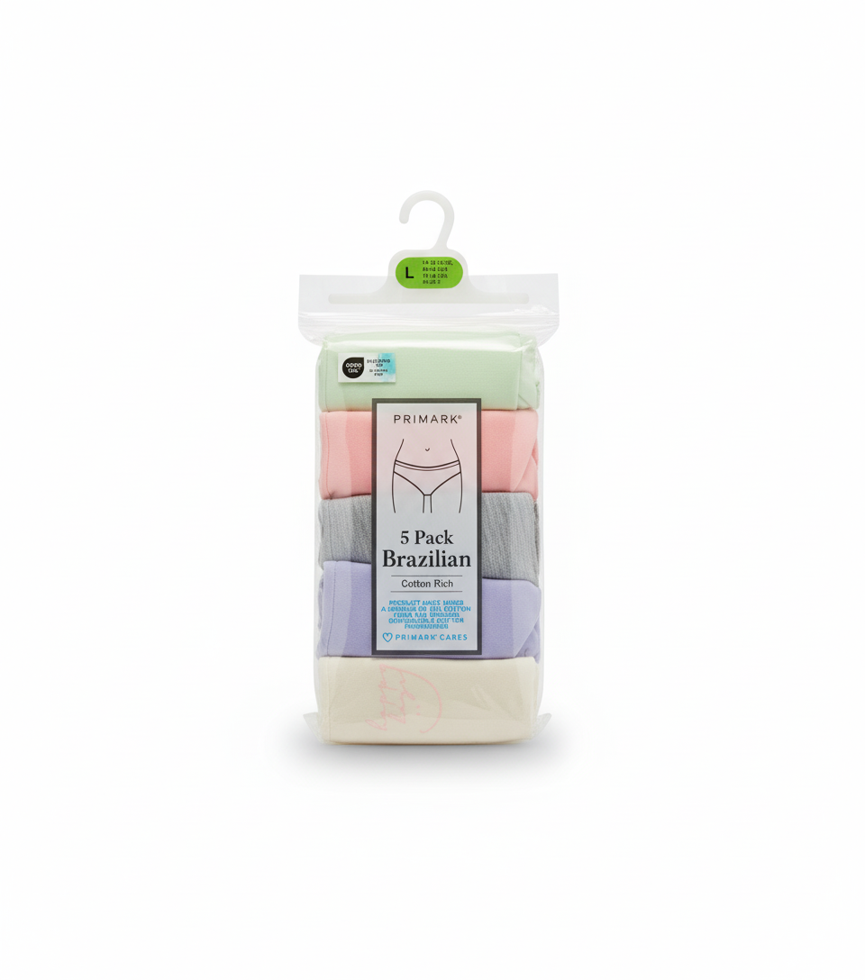 Primark 5 Pack (L) BRAZILIAN Cotton Rich (Bikinis, Briefs, Underwear, Panties, Pants) Large