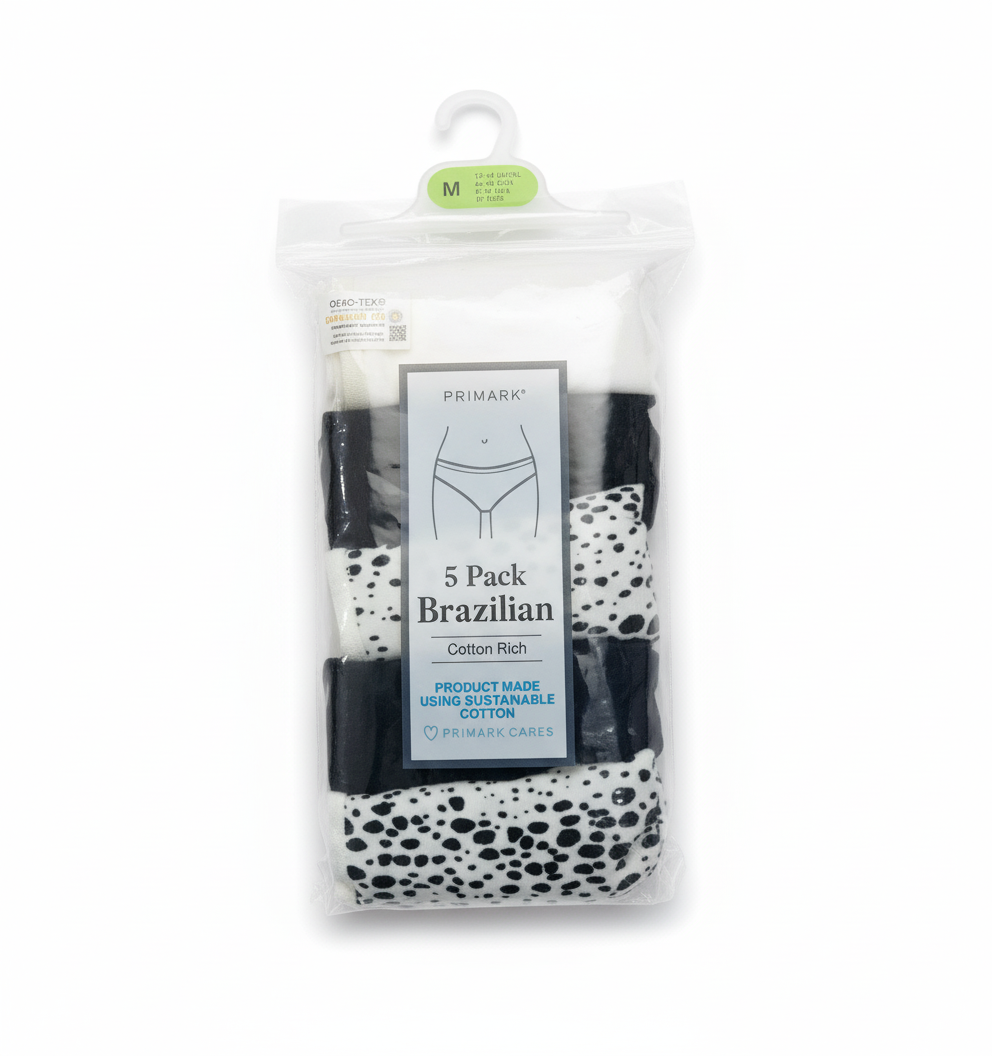 Primark 5 Pack (M) BRAZILIAN Cotton Rich (Bikinis, Briefs, Underwear, Panties, Pants) Medium