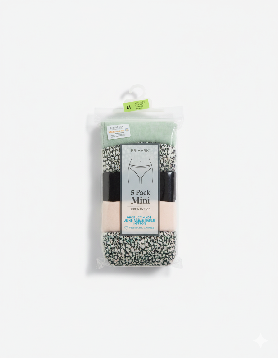 Primark 5 Pack (M) Mini 100% Cotton (Bikinis, Briefs, Underwear, Panties, Pants) Medium